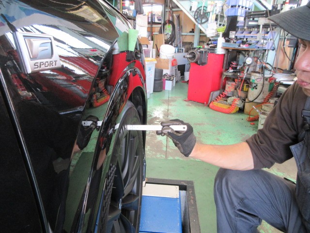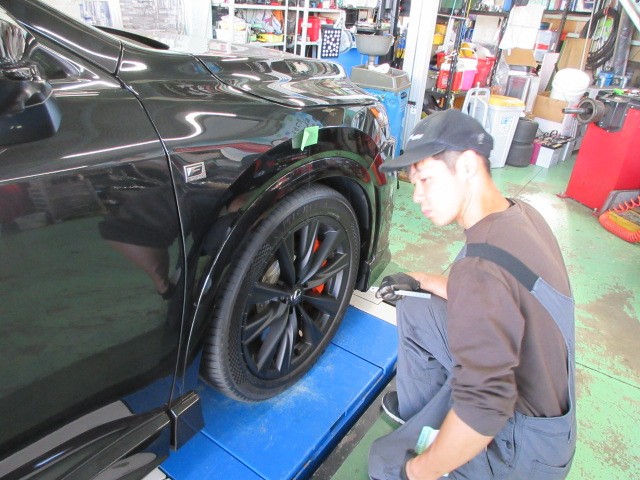 装着後は計測とタイヤとフェンダーの隙間を計測してスペーサーの厚みを決めて行きます。
