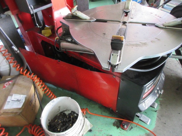 タイヤが破裂したのかなと診てみるとタイヤチェンジャーのカバーが変形していました???
