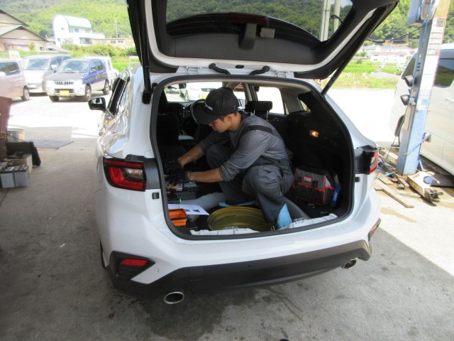 その直くんはレボーグのラゲッジスペースに追加シガーソケット取り付けです。