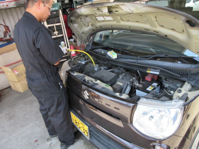 MRワゴンのお客様は、エアコンの効きが悪いのでニューテックのエアコン添加剤 コンプブースト注入です。