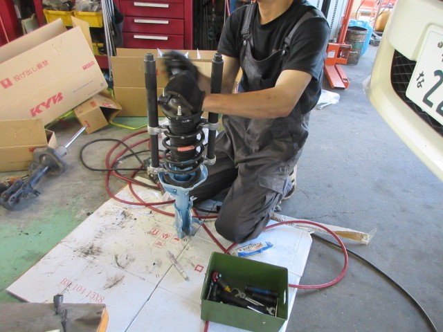 換えるのは消耗部品とショックアブソーバーをKYBのニューSRに交換致します。