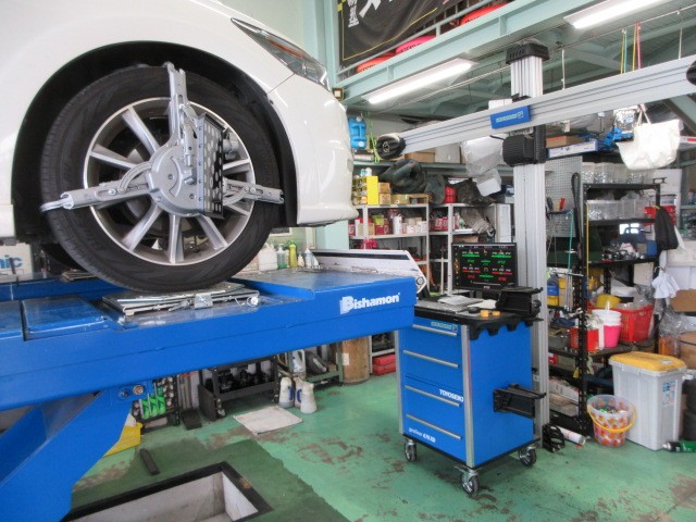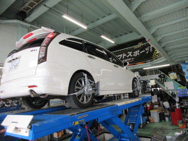 先日 サスペンション一新したストリームさんのアライメント調整致します。