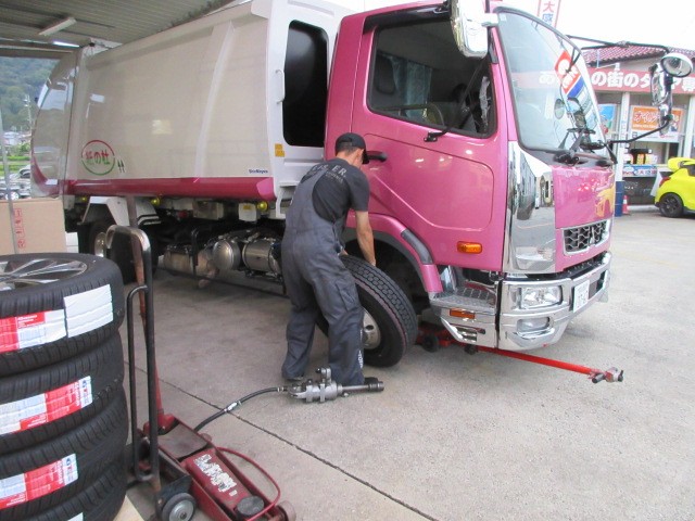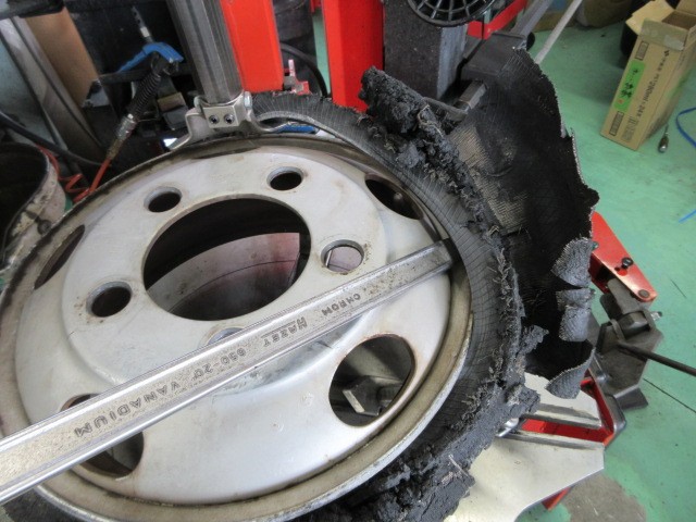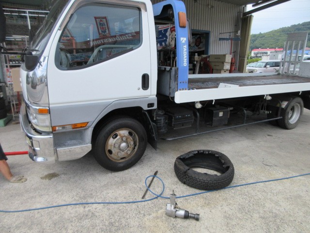 業者様の依頼で、積載車のタイヤ交換です。