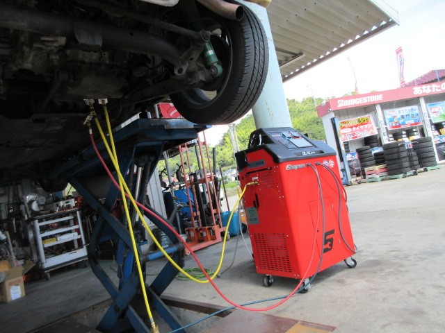 このエアコンマシーンとエア安根ラインに繋いでフラッシングして行きます。