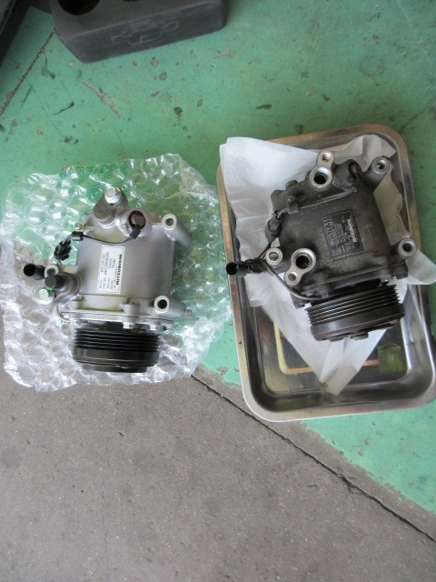 先日 下廻りの異音で預かっているアイのエアコンコンプレッサーが届いたので作業致します。