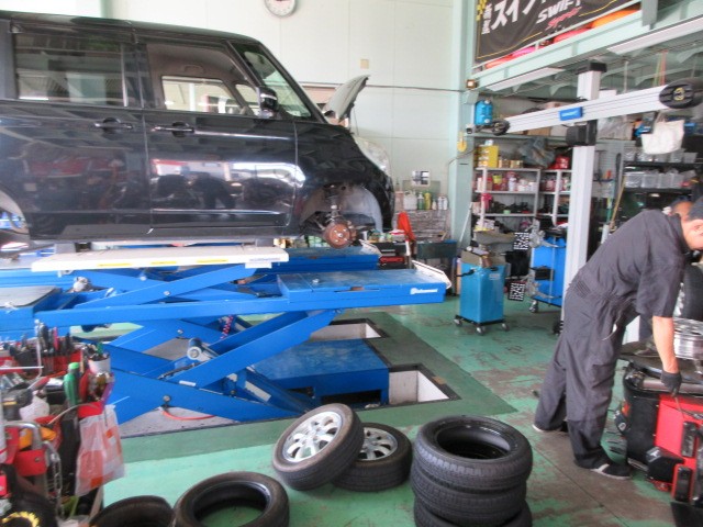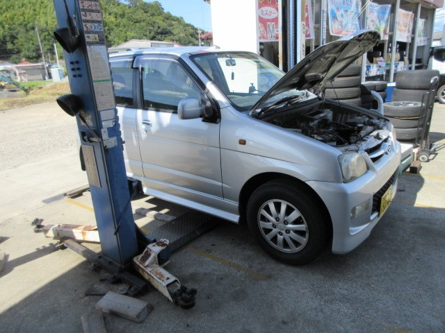 パレットの車検整備&タイヤ交換です。毎度ご注文ありがとうございます。
