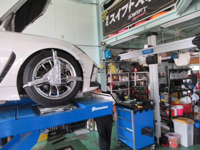 業者様の依頼で、部品交換後のアライメント調整致します。