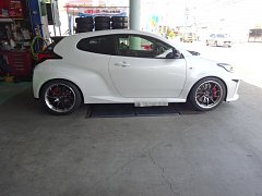 業者様からの依頼で、GRヤリスハイパフォーマンスRZのアライメント調整