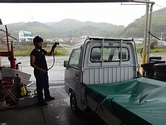 エールレンズ交換で、ご来店のサンバートラックのお客様「雨降ったら、足元濡れてるねん」