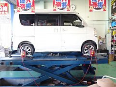 先日 リフトアップしたエブリイワゴン車検と一緒にアライメント調整です。