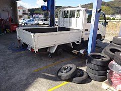 お得意様の、トラックを朝一に引き取りに行き車検整備