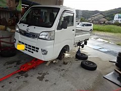 朝一番にお得意様からの依頼が有り。不動車のタイヤの脱着