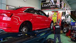 マツダ3カッコイイですね。持ち込みの車高調XYZの取り付けです。