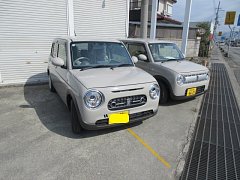 朝一にラパンの納車式です。普通のラパンよりカワイイですね。