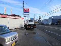 朝早くから電話で起こされてロードサービスの受け入れです。