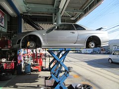 昨日引き取って来た34GT-Rの車検整備です。車検までの距離が3000kmなので痛みもありません