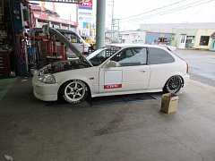 忙しい中シビックタイプRのオイル交換です。車高が低すぎて・・・