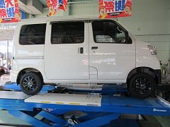 先日 タイロッドが当たってしまい装着できなかったエブリイバンさんにもう一度来てもらいリベンジです。