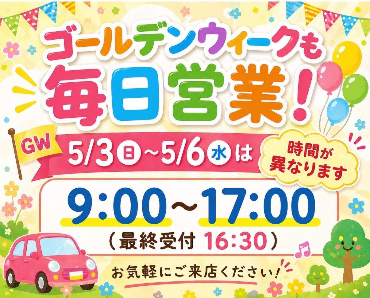 ゴールデンウイークも毎日営業!ご来店お待ちしております。
