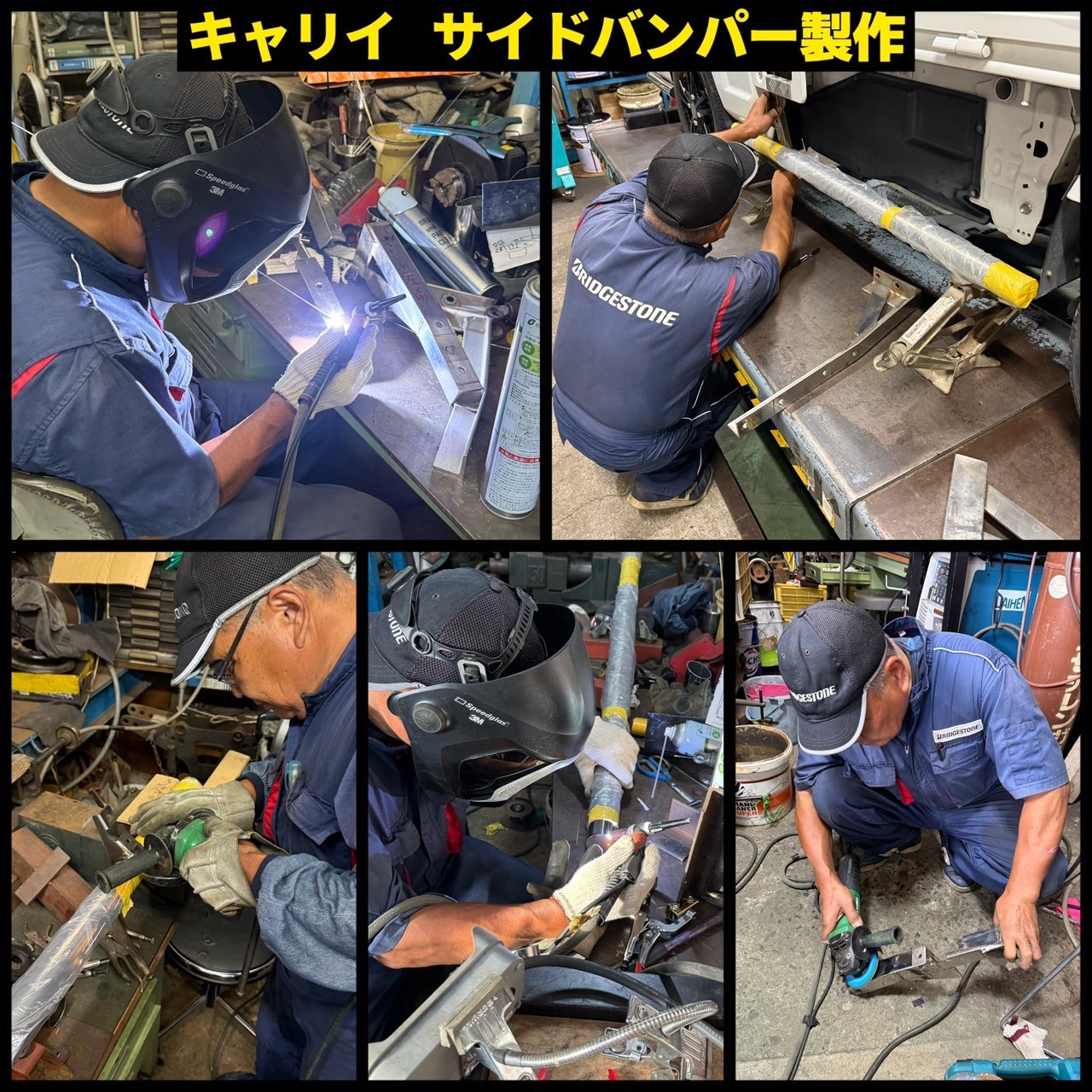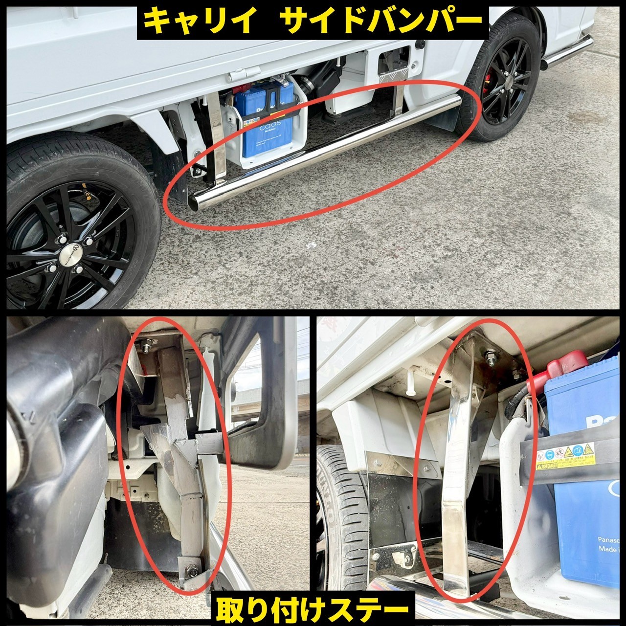 キャリー軽トラックに、持ち込みのステンレス製のサイドバンパー(他の車種)を加工して、専用のサイドバンパーを製作させていただきました!(*^^)v