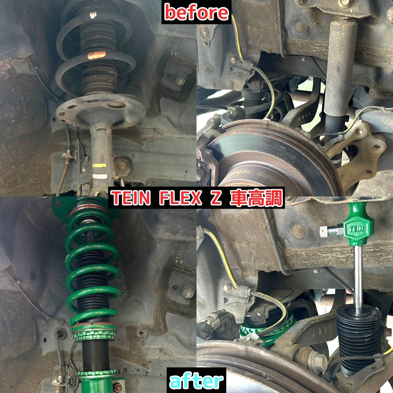 テインさんの【フレックスZ】全長調整式車高調をご購入いただき、取り付けさせていただきました!