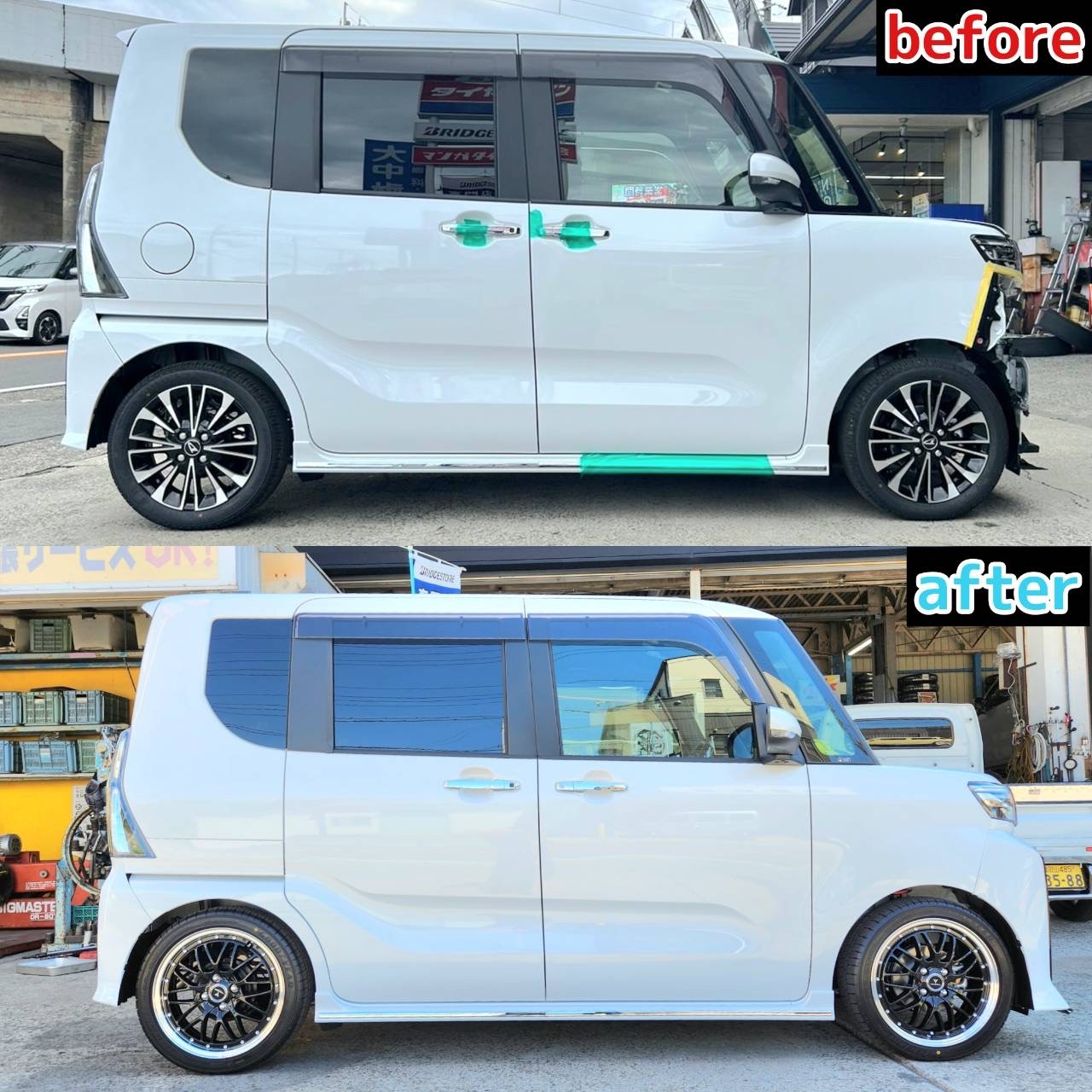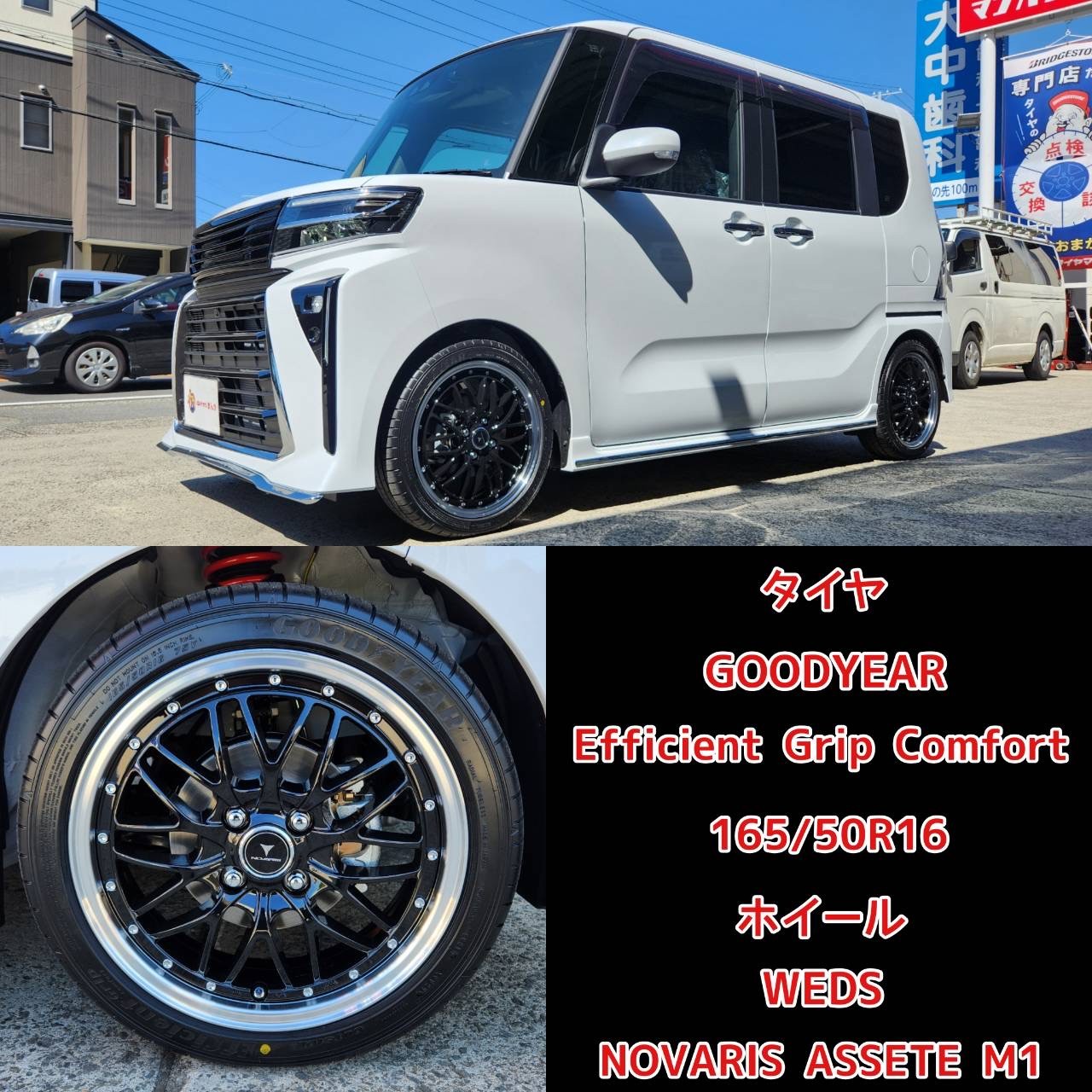 T様の新車タントに、タナベさんの【NF210】ダウンサスとWEDZ(ウェッズ)さんの【ノヴァリス アセットM1】16インチアルミホイール&タイヤセットを取り付けさせていただきました!(*^^)v