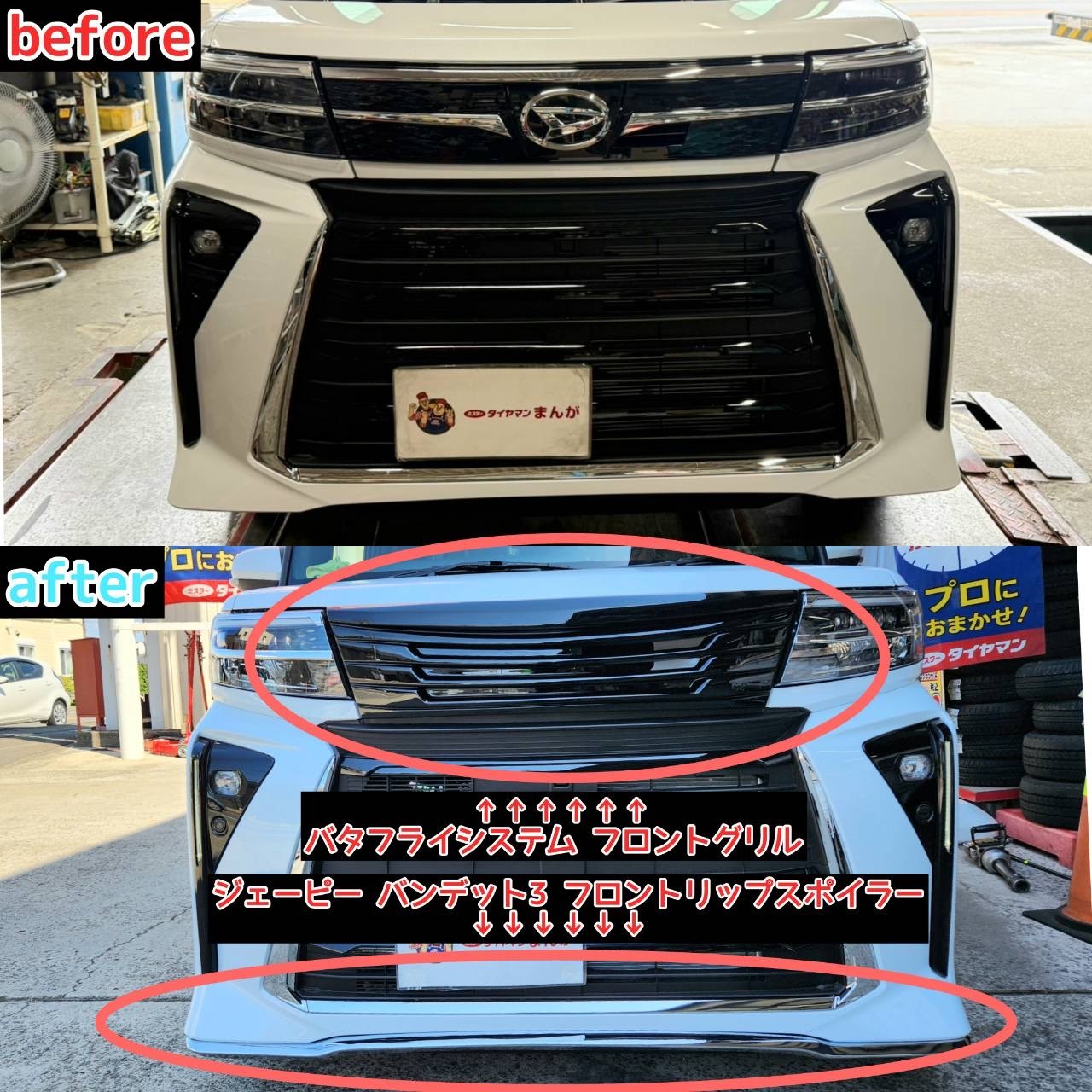 さらにこちらの車両には、バタフライシステムさんの【フロントグリル】と持ち込みの【フロントリップスポイラー】を取り付けさせていただきました!(^^♪