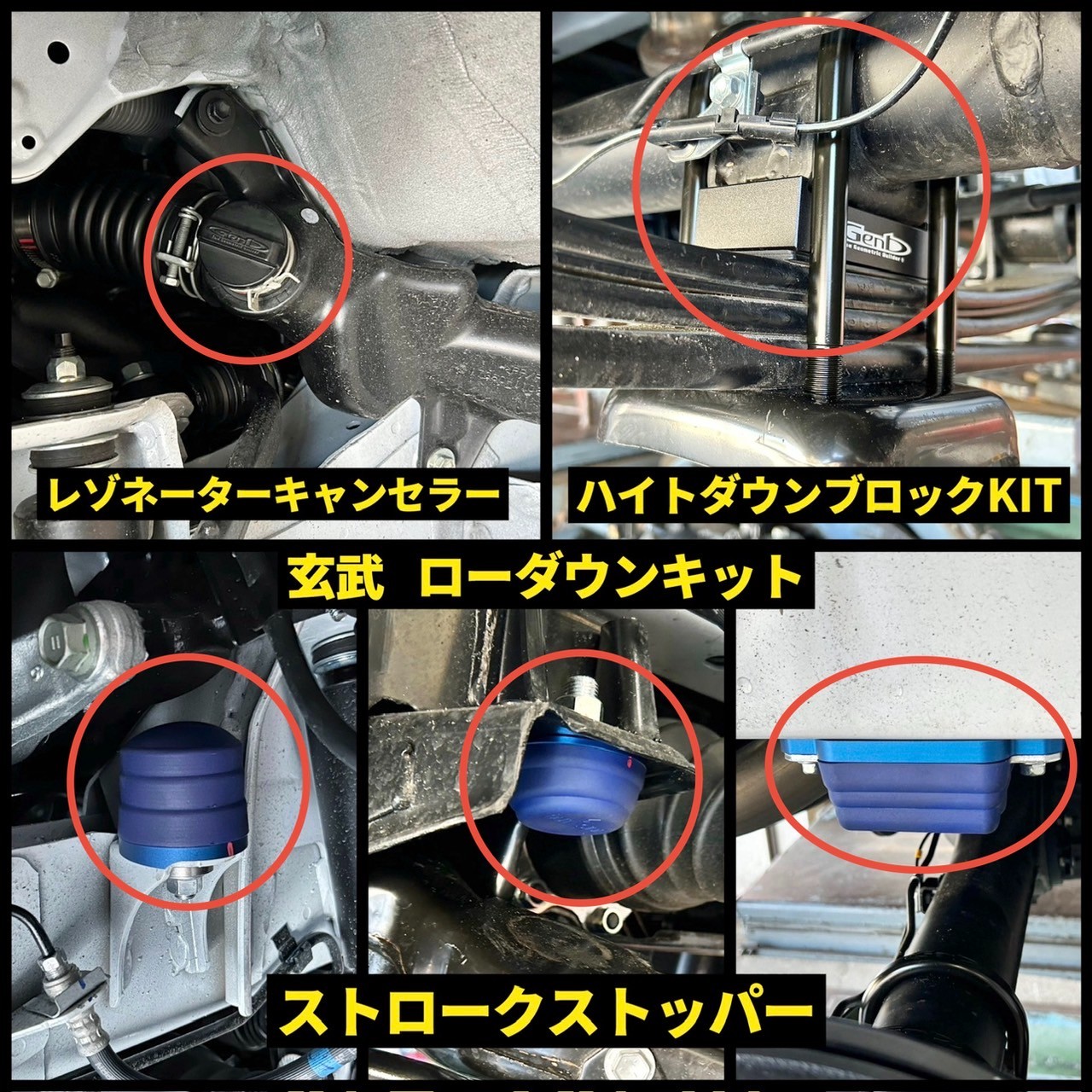 ローダウンキットは、玄武さんの【ハイトダウンブロック】1インチローダウンブロックと【レゾネーターキャンセラー】、【ストロークストッパー】を取り付けさせていただきました!(^_-)-☆