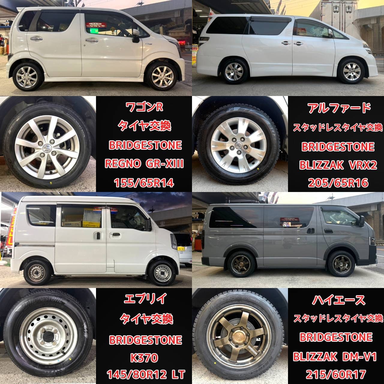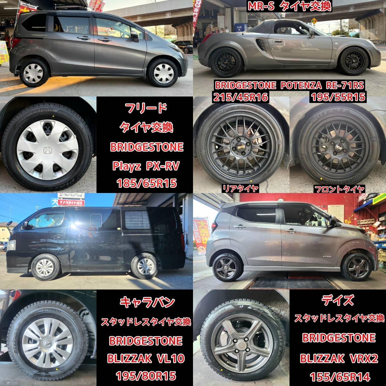 ↓ 2日間タイヤをご購入いただいた車両(一部)