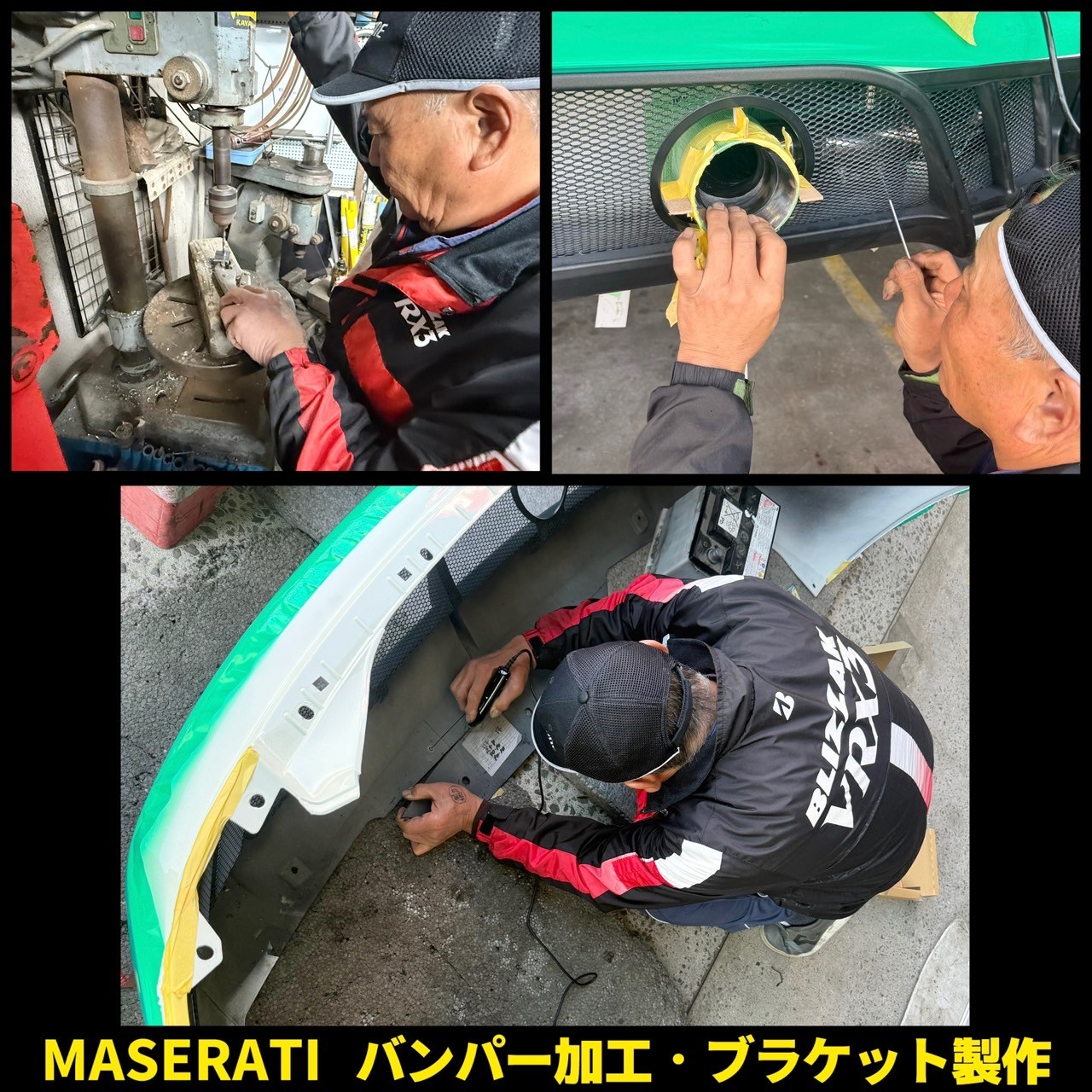 これがまた大変な作業でして、、、(-_-;) バンパーの脱着を繰り返しながらの製作で、バンパー内も手が入りづらく、中々社長は苦労してました!(^▽^;)