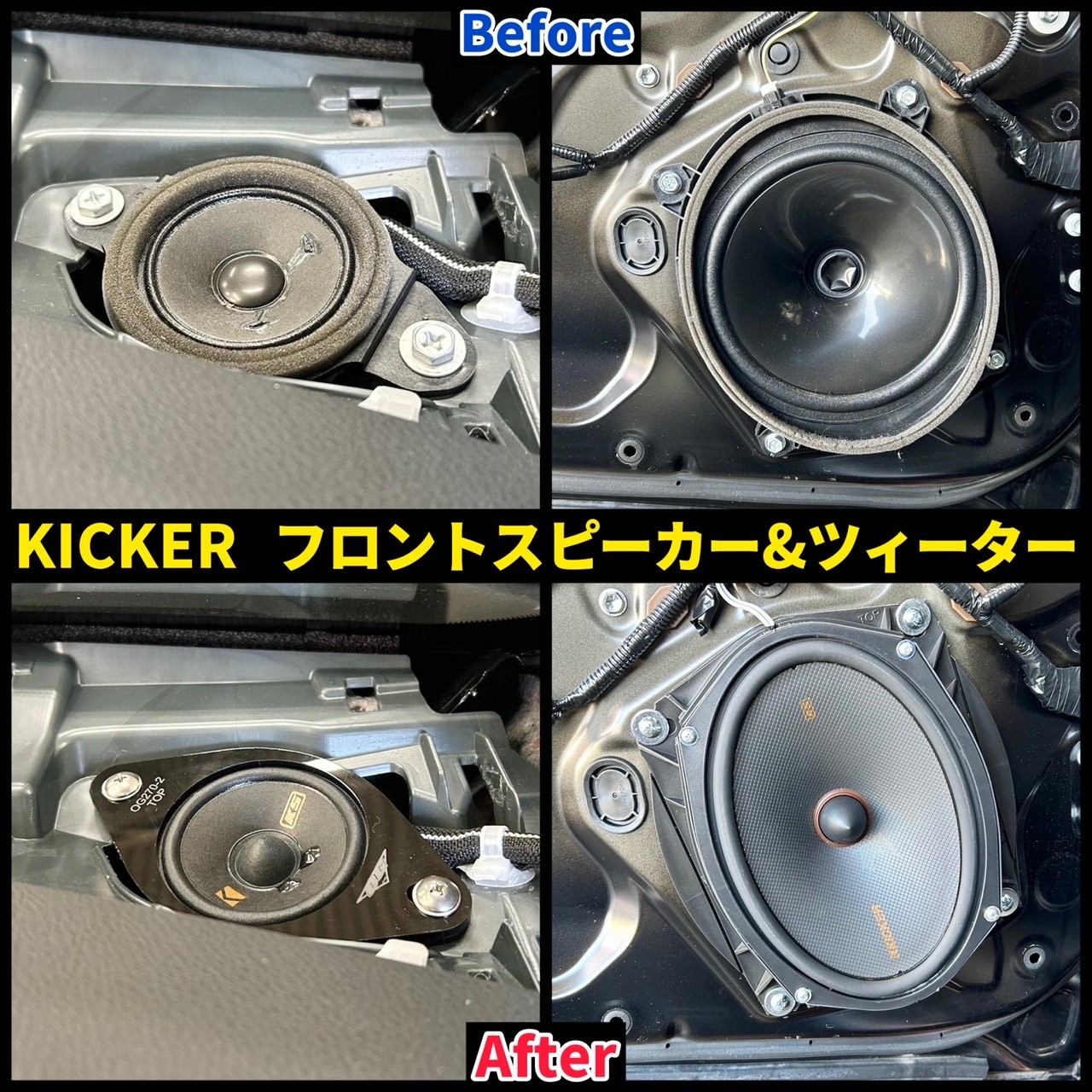 フロントスピーカーには、KICKER(キッカー)さんの車種専用スピーカーを取り付けさせていただきました!(^_-)-☆