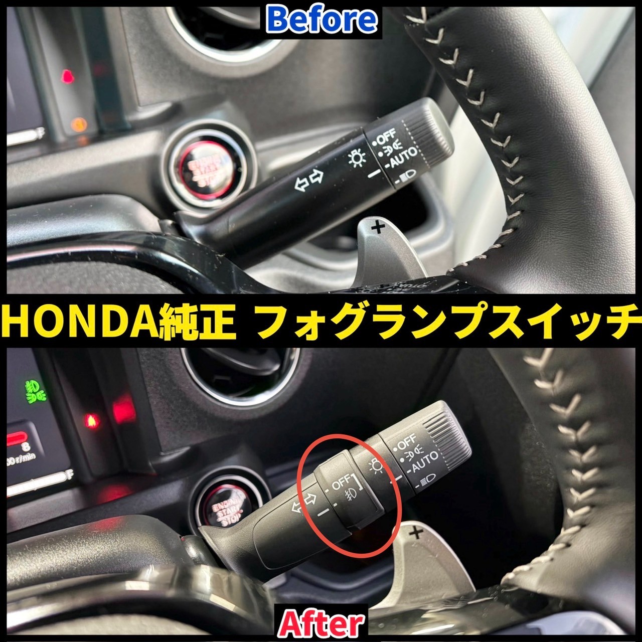 純正アクセサリー品(オプション品)ですので、フォグライトのスイッチは純正ウインカーレバーを交換。