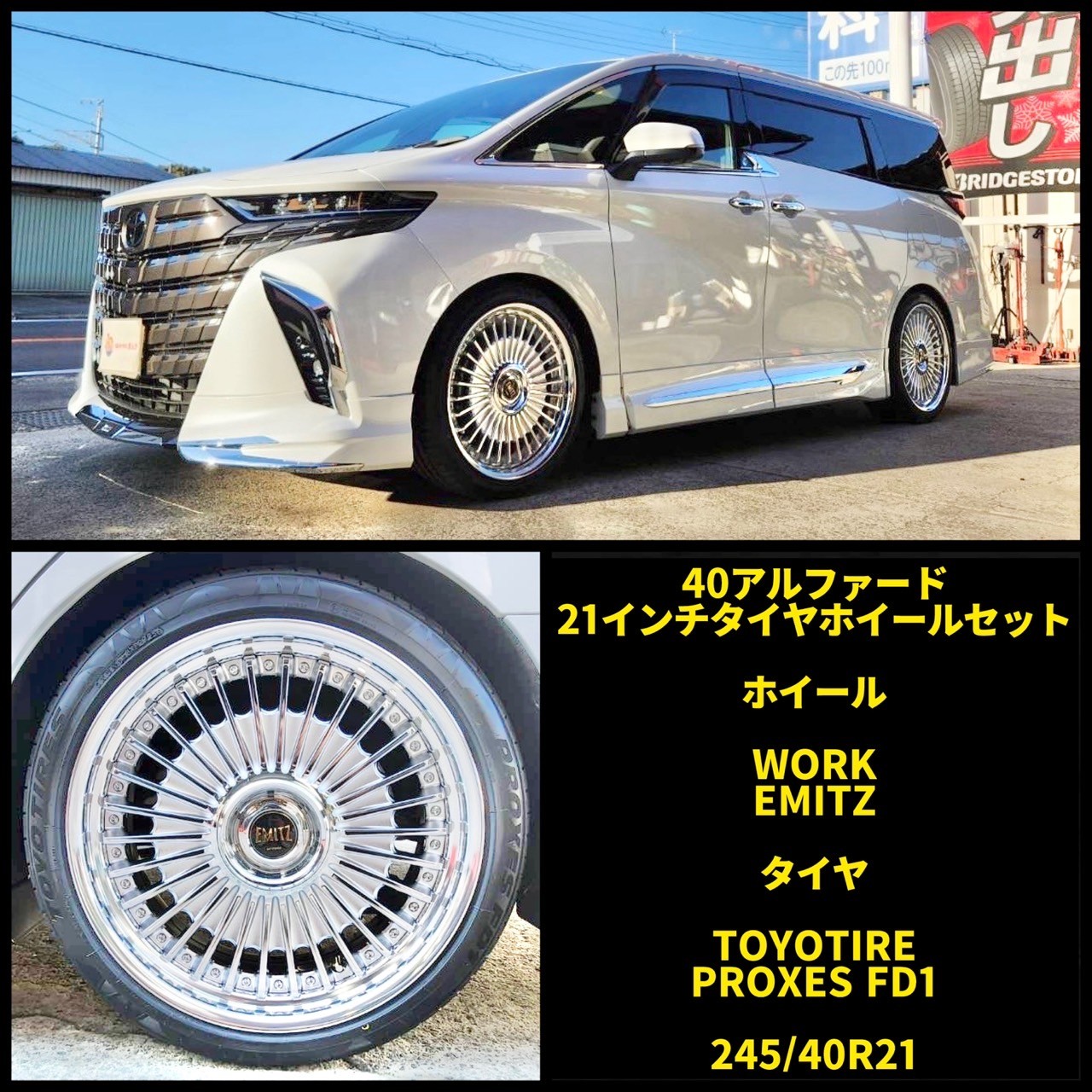 アルミホイールは、WORK(ワーク)さんの【EMITZ(イミッツ)】21インチアルミホイール&タイヤセットを装着させていただきました!(*^^)v