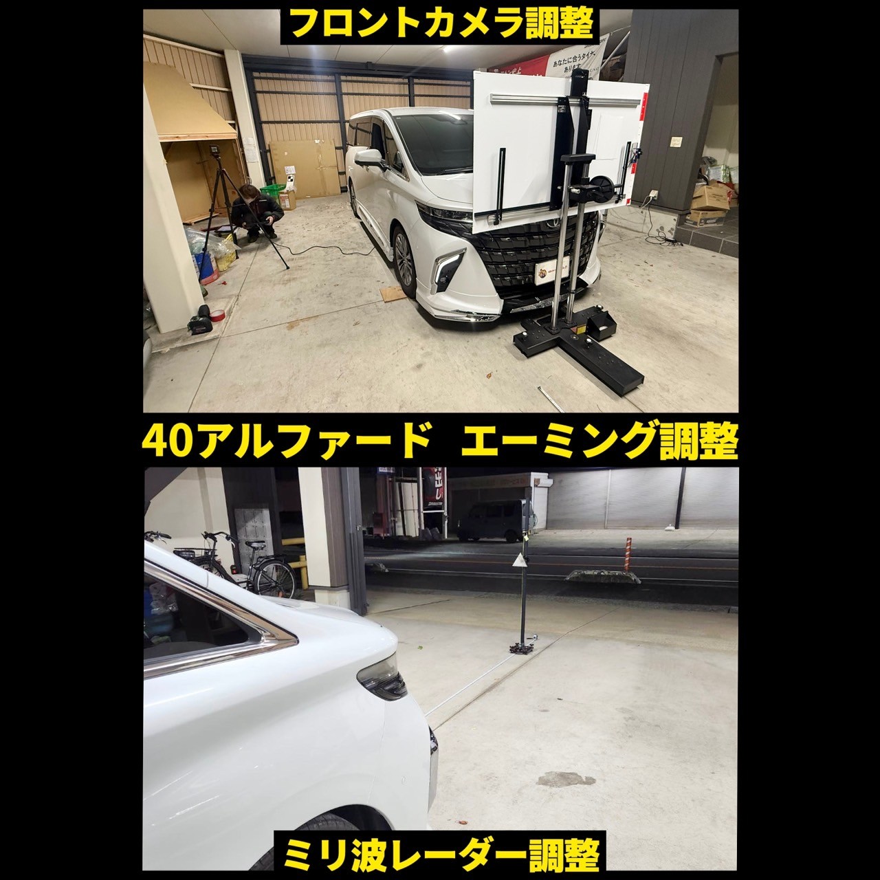 360度レーザー水平器を使用して車体を水平にし、エーミングボードを使用してキッチリとデータを調整&補正させていただいております!(*^^)v