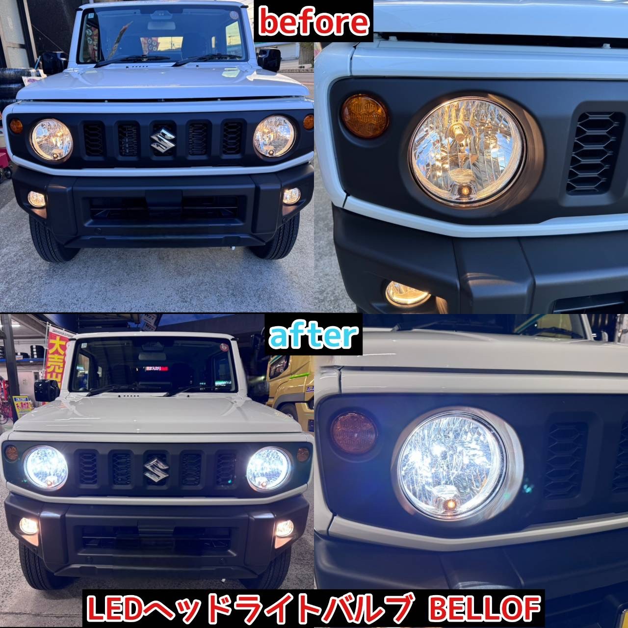 ↓ こちらは、上でご紹介したM様の娘さんのジムニーで、お父様のお車を見て同じように(ヘッドライトバルブ以外)ご依頼いただきました!(≧▽≦) ご依頼ありがとうございました!!