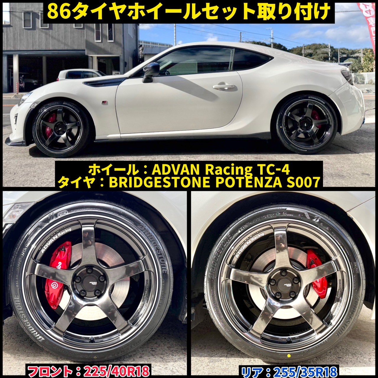 86(ハチロク)に、アドンバンレーシングさんの【TC-4】18インチアルミホイールとタイヤは、ブリヂストンの【ポテンザ S007】をセットし装着させていただきました!