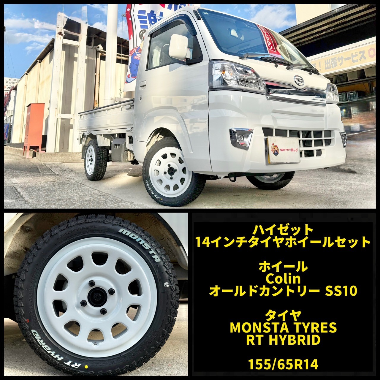 ハイゼット軽トラックに、コーリンさんの【オールドカントリーSS10】14インチスチールホイールとタイヤは、MONSTA(モンスタ)さんの【RTハイブリッド】ホワイトレタータイヤをセット!(≧▽≦)