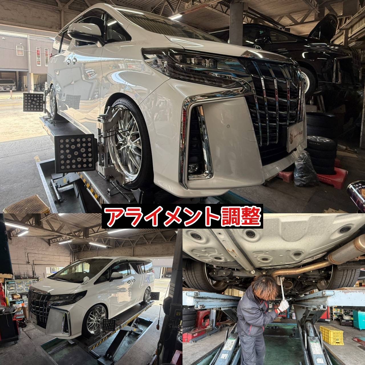 経験豊富なスタッフがお車の特性や車高に合わせて毎回キッチリと最適な足まわりの数値(角度)に調整・補正させて頂いております!