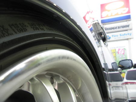 車高を下げた分、ホイールが中に入ったのでスペーサーで前後とも外へ出しました。