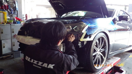 I様のフーガにフォグのHID化、さらにヘットライトにLEDラインを取り付け~