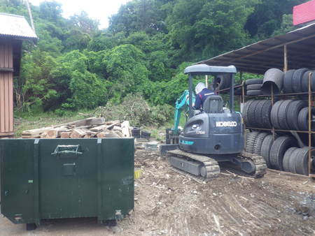 写真③ 店舗拡張をするため、GW休み中に取引のあるレンタル重機屋さんからユンボを借りて古家を解体作業し新地にしました。