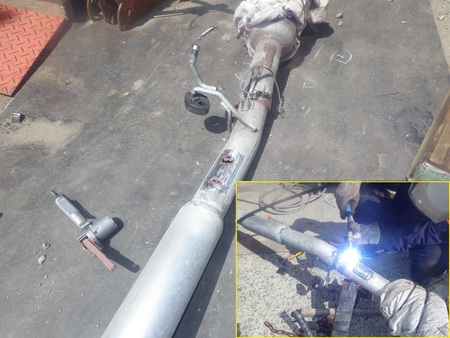 写真① U様のインプレッサのマフラーを修理。穴が数箇所開いていたのでステンレスパイプを加工して穴を塞ぎ修理しました!
