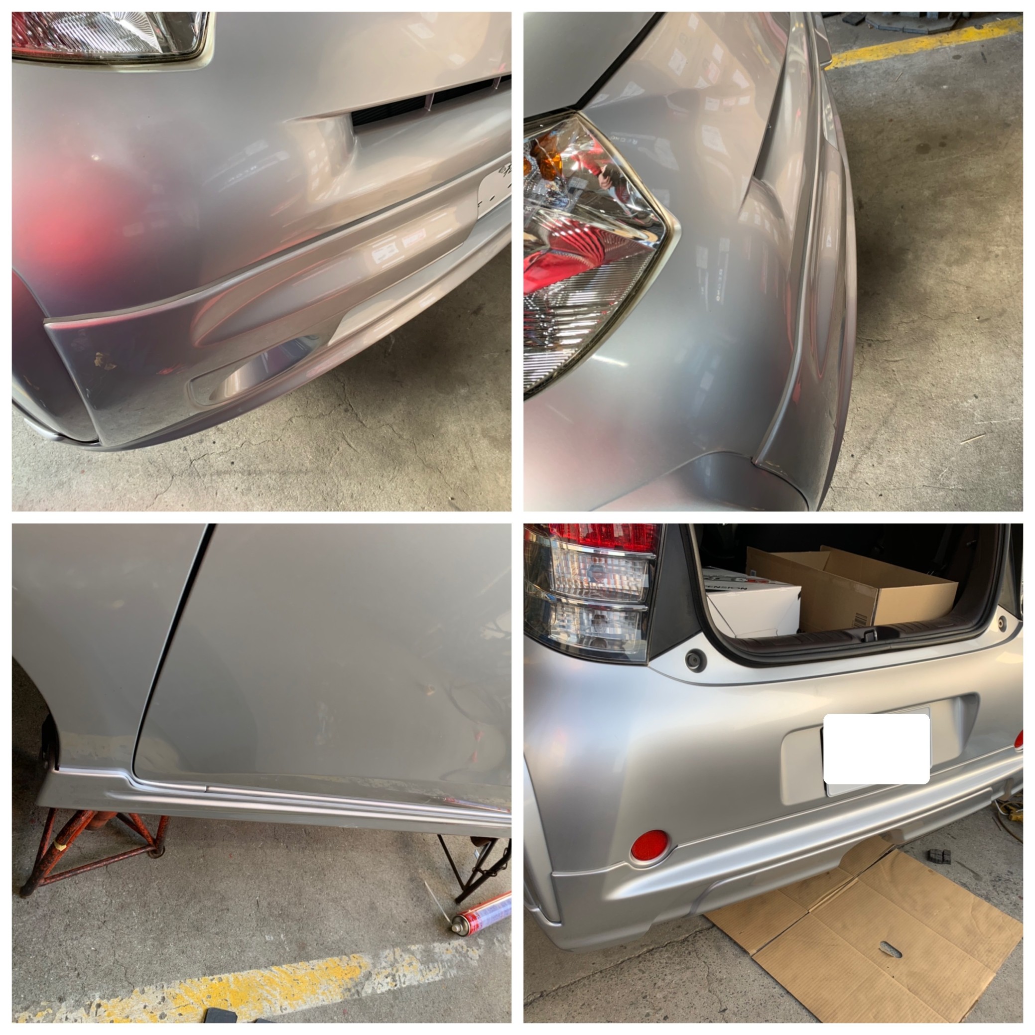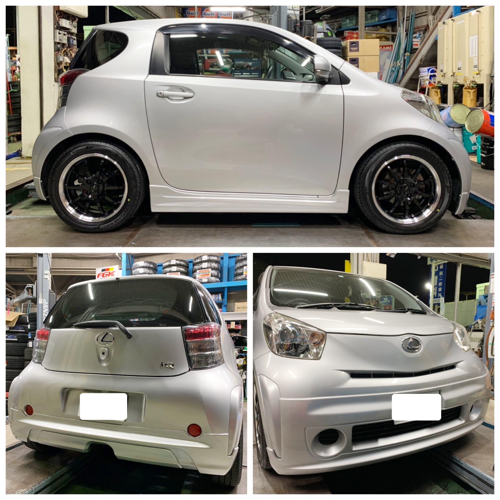 お車は、トヨタIQで。。。 当初は両面もはずれてそれぞれのエアロが浮いた状態になっていましたので~(当初の状態の写真を撮り忘れました・・・ゴメン)