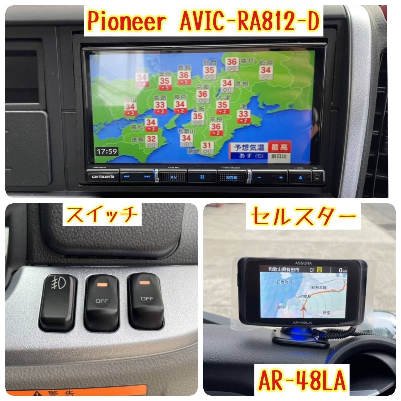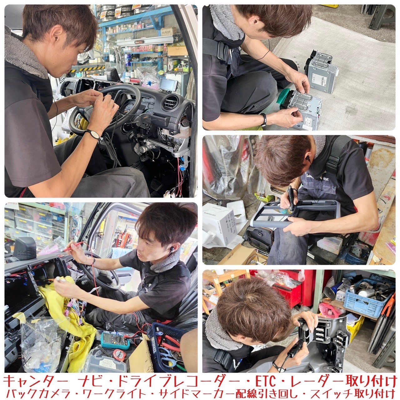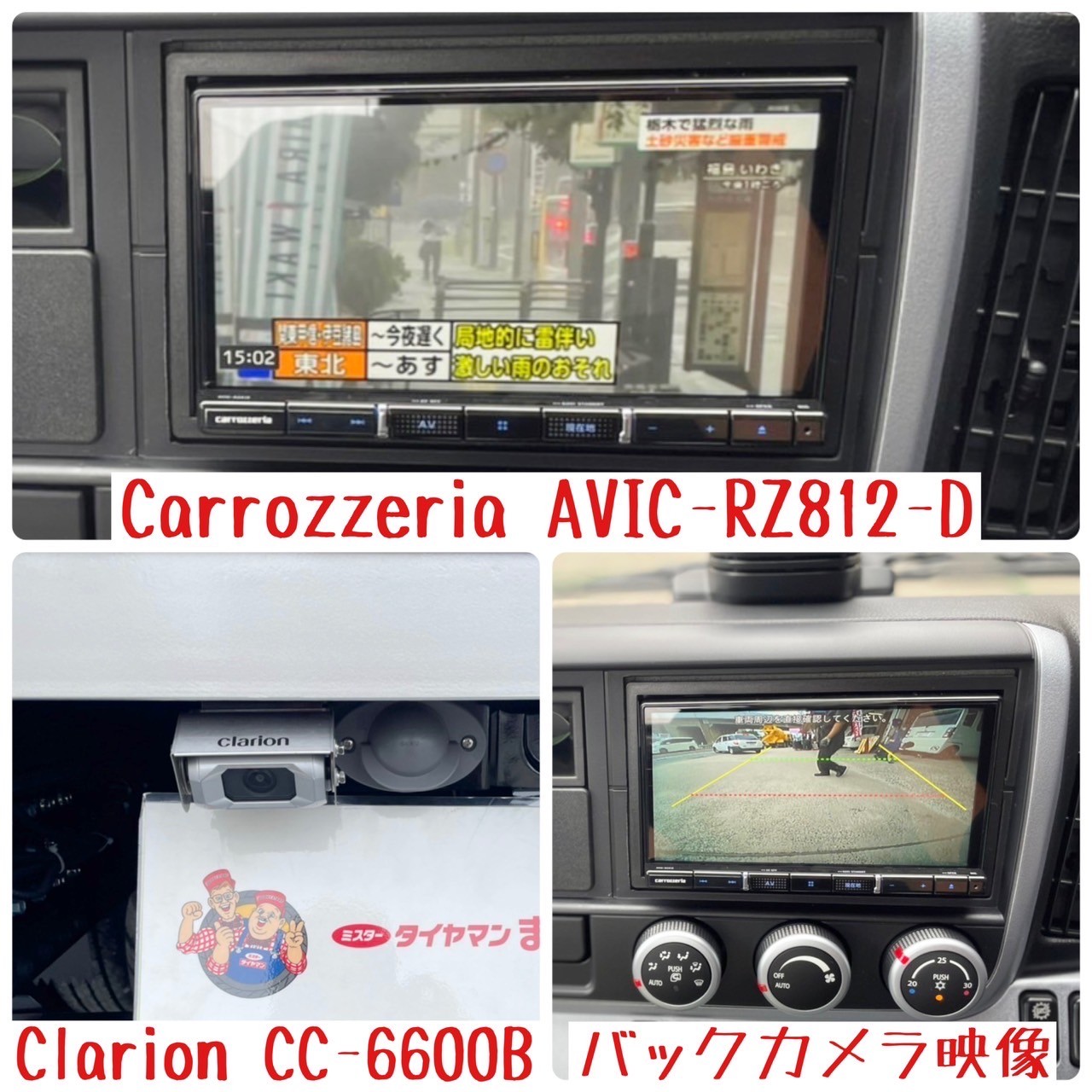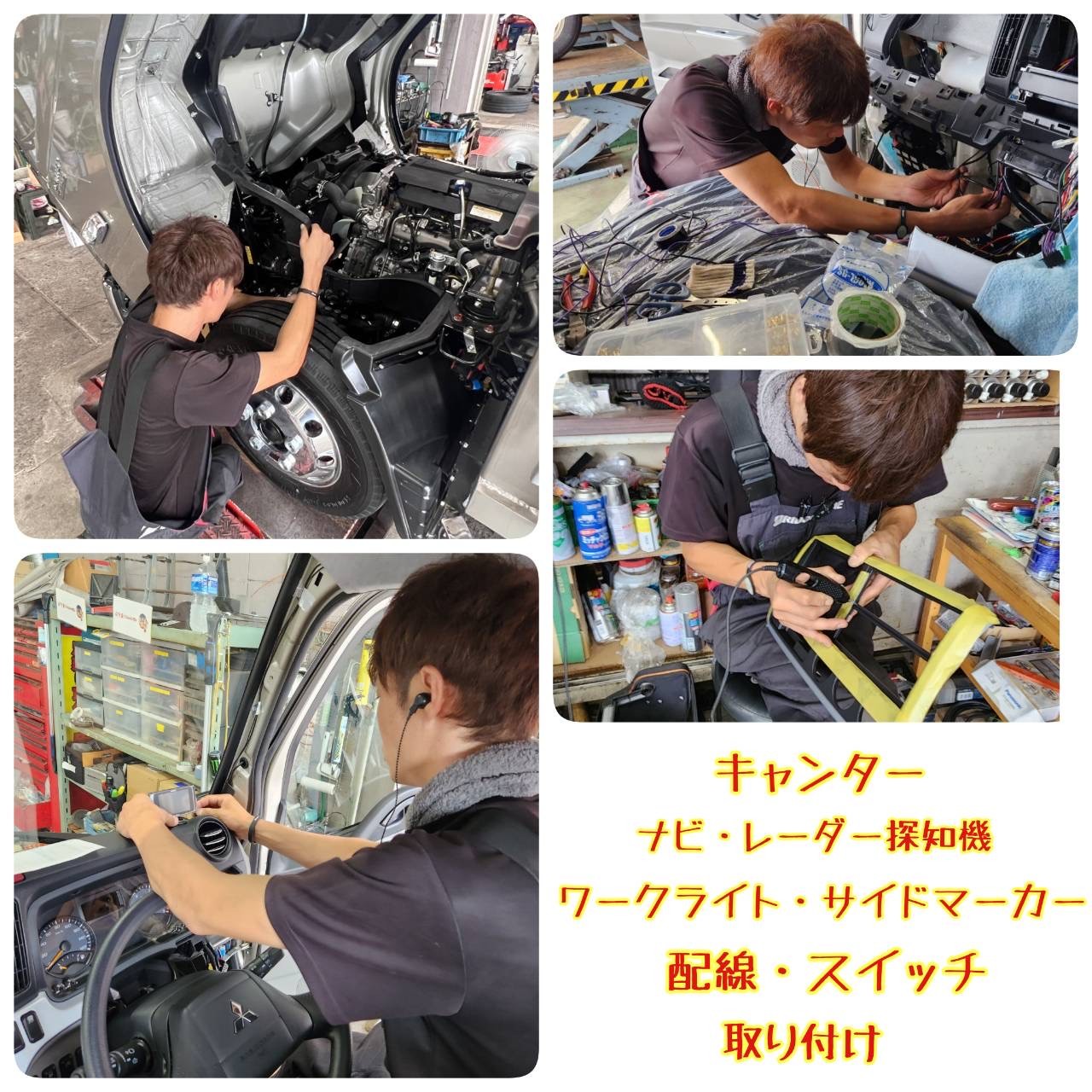 新車キャンター(2t車)に、カロッツェリアさんの【AVIC-RZ812-D】7型ナビとクラリオンさんのトラック用バックカメラ、セルスターさんのレーダー探知機(移動オービス対応)、コムテックさんのドライブレコーダー、パナソニックさんのETCを取り付けました!(^_-)-☆