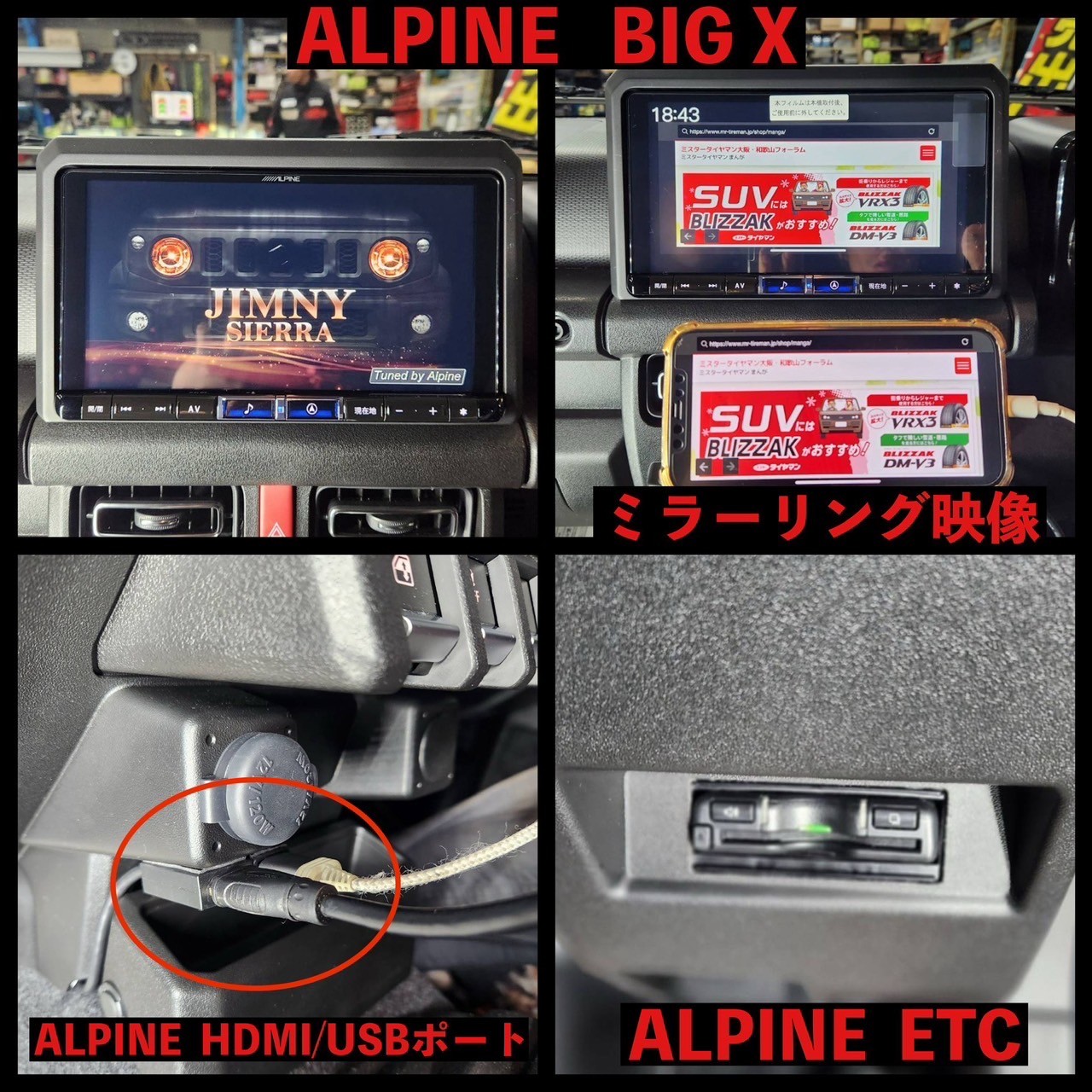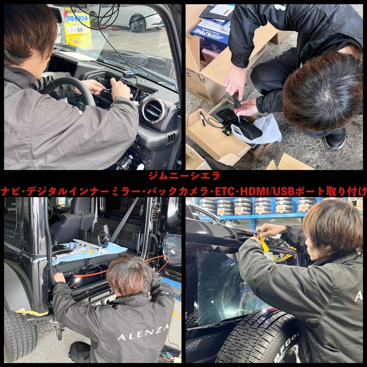 先日、車高調とアルミホイールを取り付けたN様のジムニーシエラに、アルパインさんの【BIG X】9型ナビとデジタルインナーミラー、バックカメラ、ETC、HDMIコードを取り付けました!(^_-)-☆