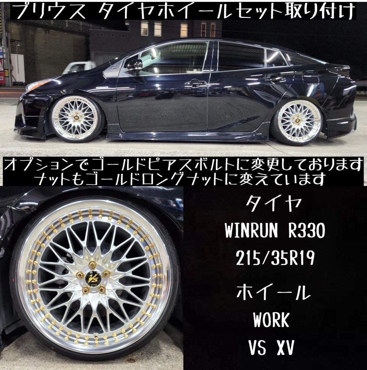 今回装着したアルミホイールは、WORKさんの【VS XV】19インチアルミホイールです。オプションで【ゴールドピアスボルト】を追加。 さらにボルトと揃えるように協栄産業さんの【ゴールドロングナット】も取り付けました!(^_-)-☆