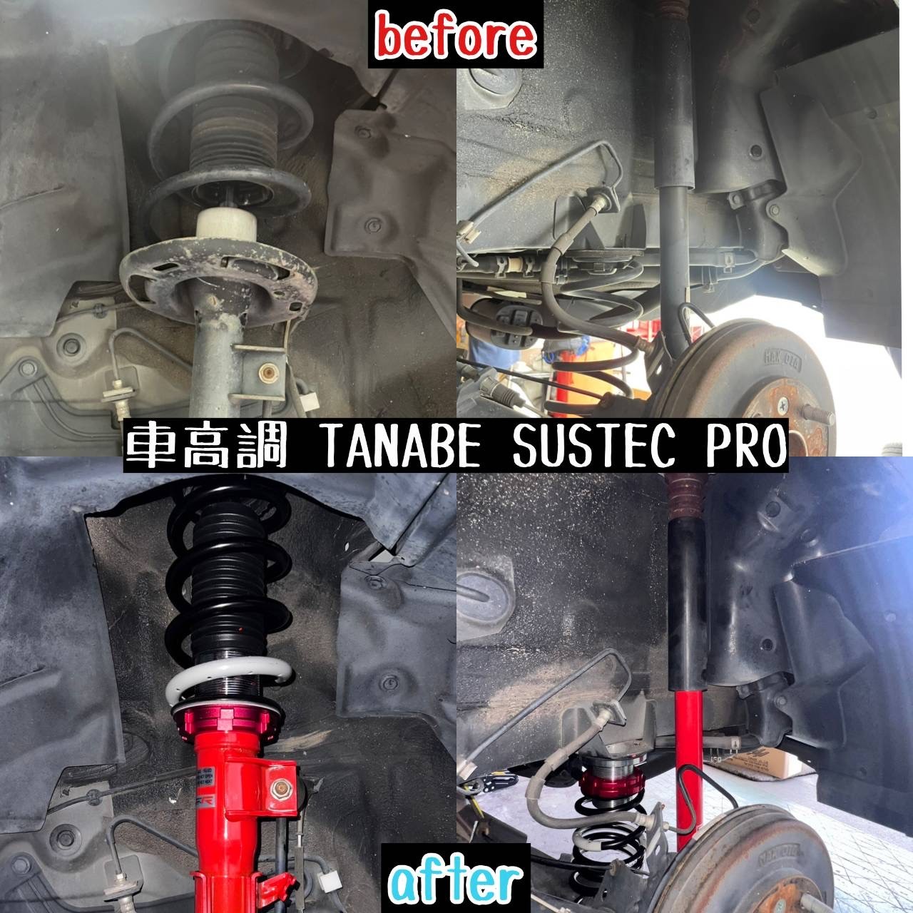 今回取り付けた車高調は、タナベさんの【サステックPRO CR】車高調を取り付けさせていただきました!