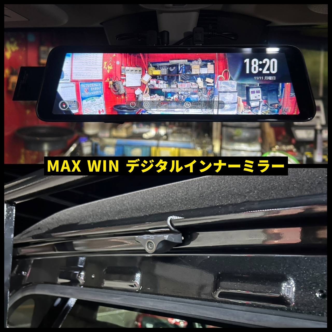 さらにおこちらの車両には、マックスウィンさんの【デジタルインナーミラー】も取り付けさせていただきました!