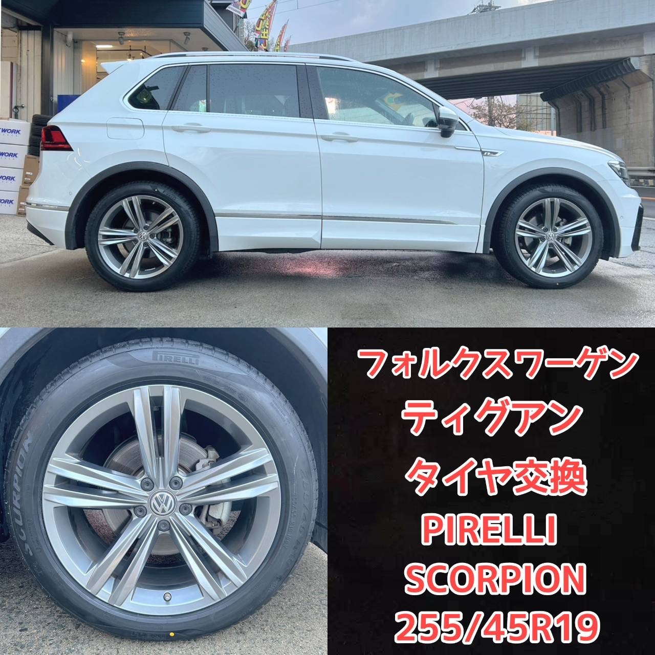 ティグアンに、ピレリさんの【スコーピオン】19インチタイヤ交換(4本)をさせていただきました!