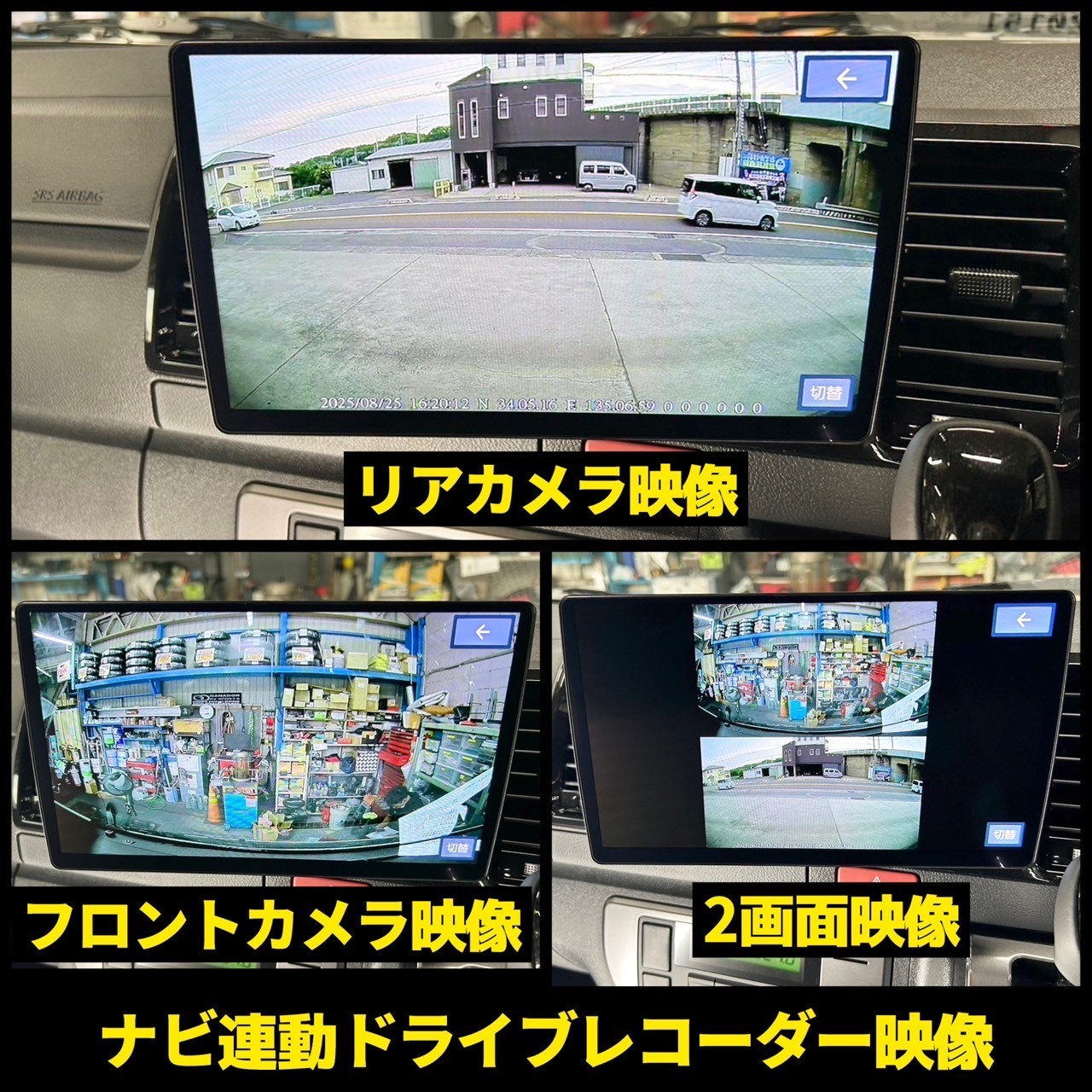 ナビ連動ドライブレコーダーですので、録画した映像は大画面で確認することが可能です。前・後・前後の映像を見ることが出来ます!(^^♪